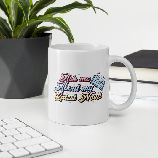 Ask Me About My Latest Novel - White glossy mug