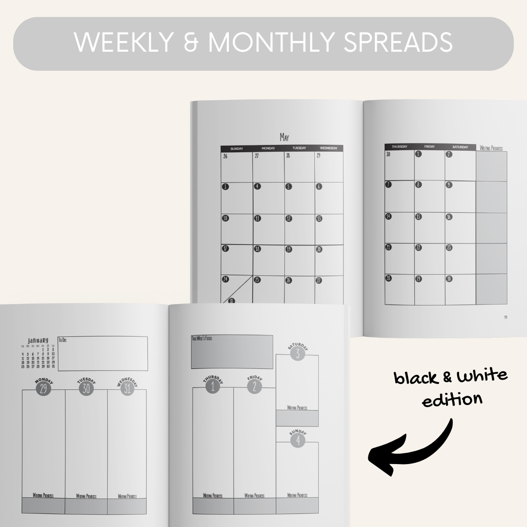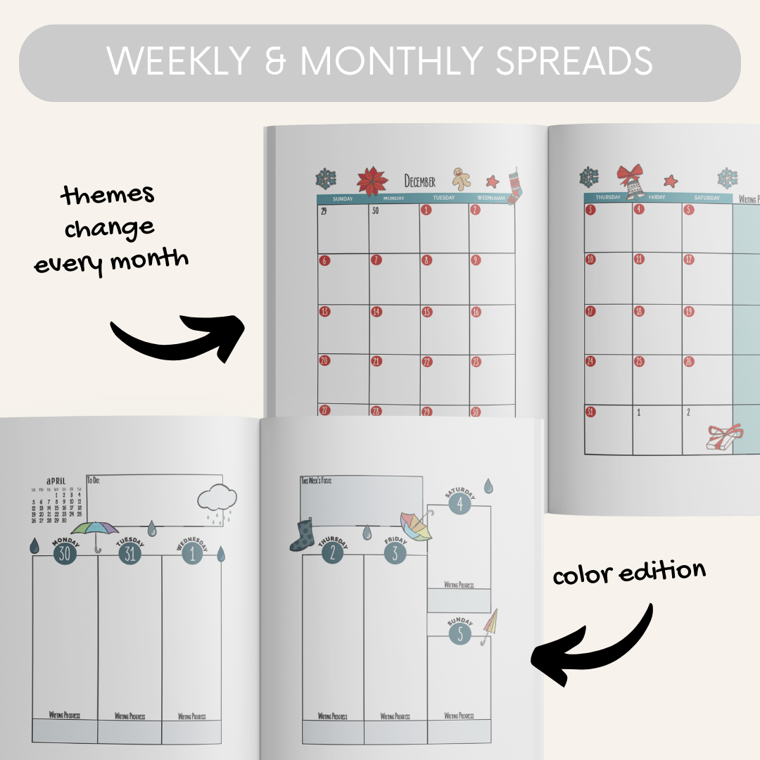 Overwhelmed by the idea of writing a book? The 2026 Writing Planner is designed to help you find time and motivate you to accomplish all your writing goals. As you fill out the planner, you’ll be able to carve out time to write and track your progress, and celebrate wins along the way!